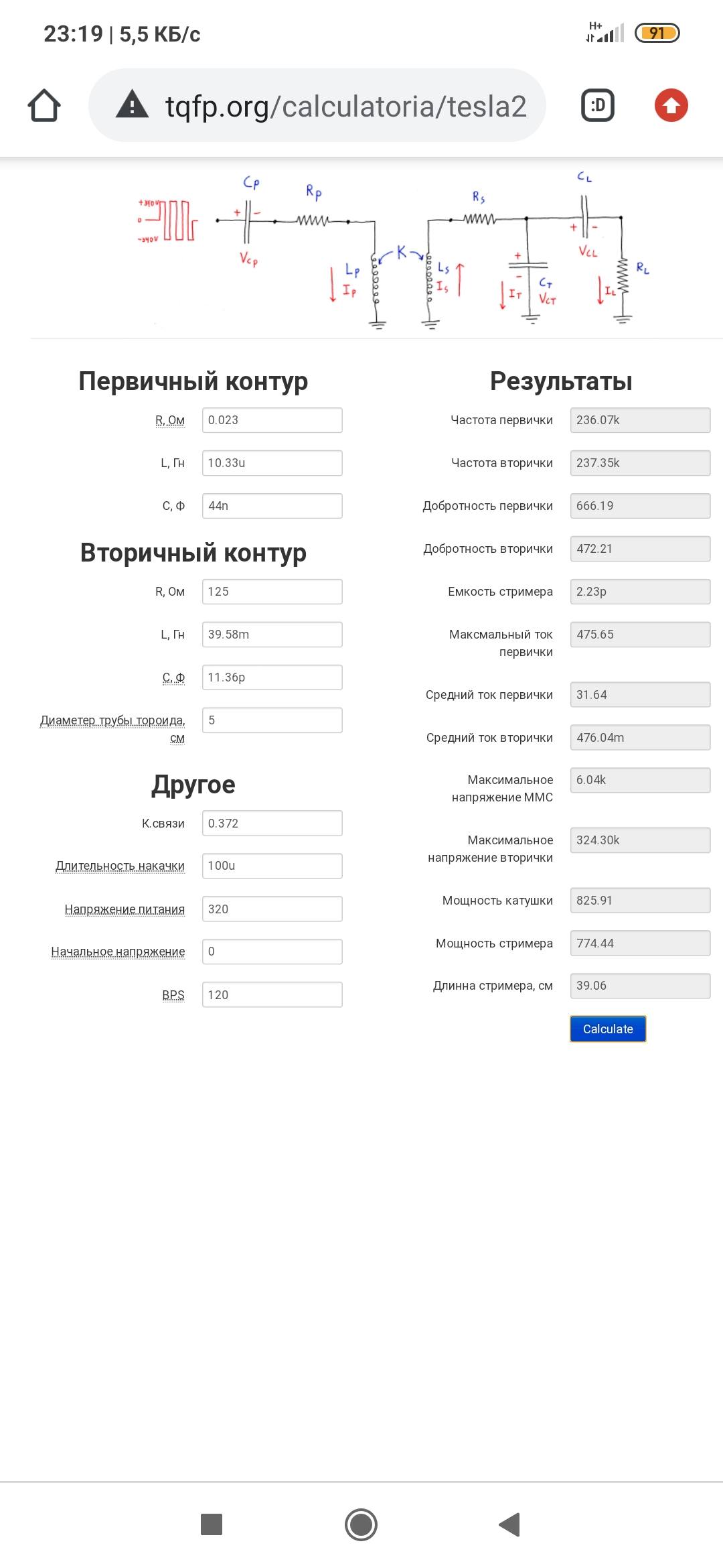 Пацаны, процесс идет. Есть расчет и почти готовые резонаторы. Делаю с возможностью ее эволюции до DR SSTC, и вот не понятно, какой коэффициент связи максимальный, у всех по разному, у меня вот так: