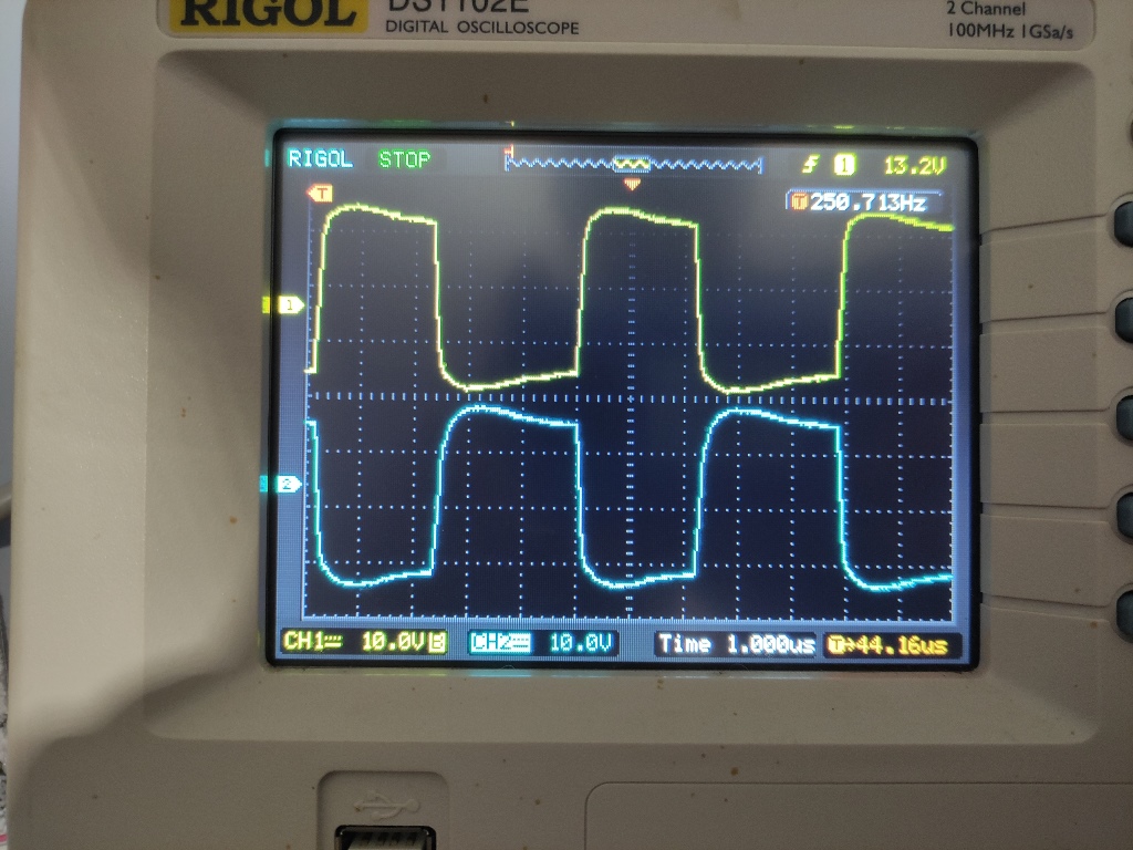 Собрал генератор и подключил вместо диодной вилки, подал сигнал на драйверы и на затворах появились прямоугольники.