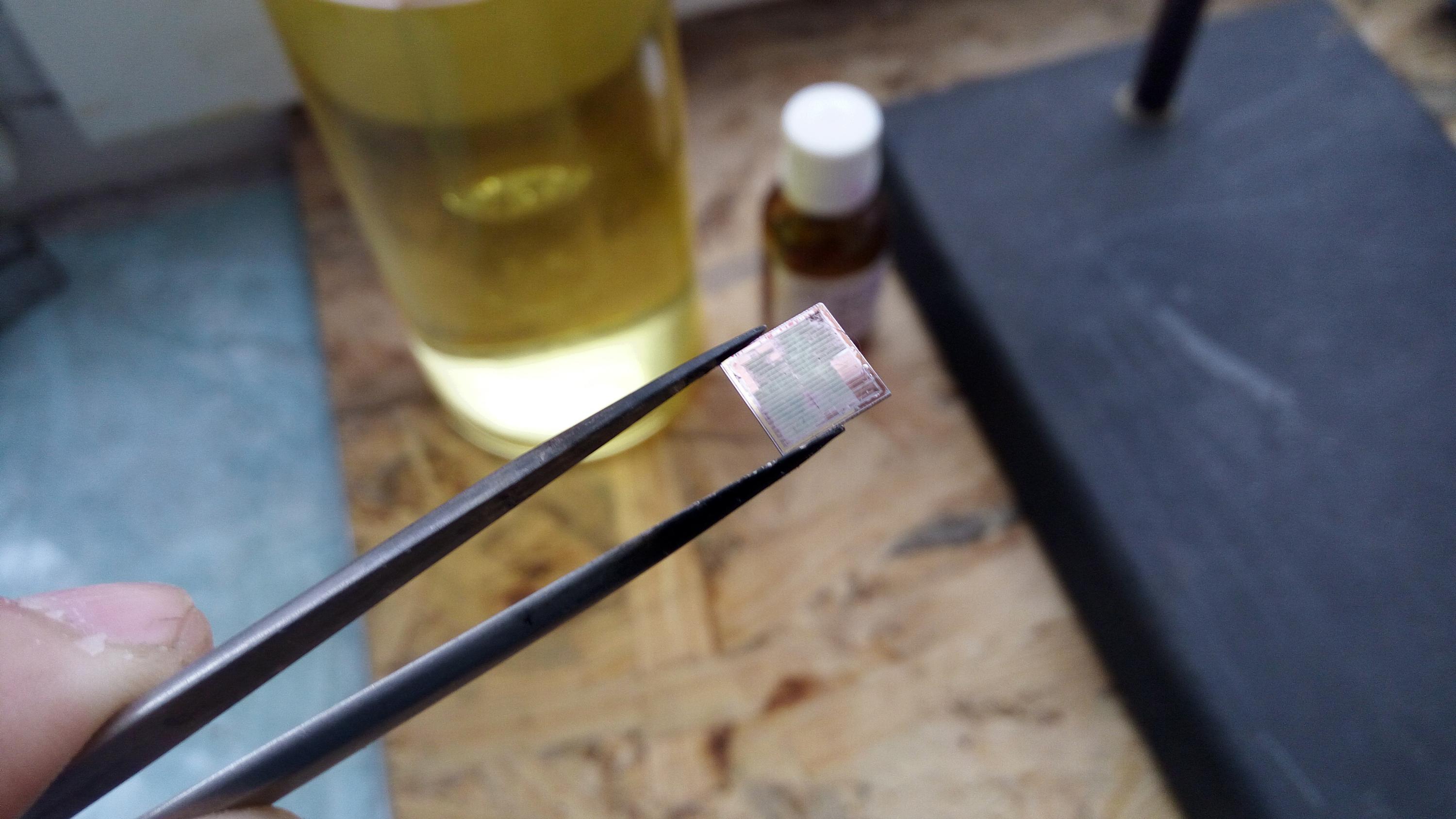 Растворённая же микросхема в азотке выглядит идеально — но надо ещё пофотать.