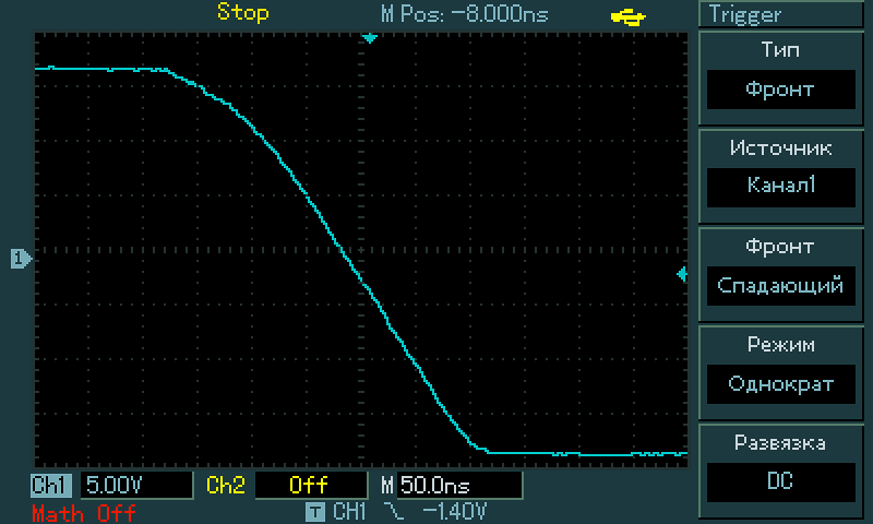ограничение полосы на осциле отключено. я во всех настройках какие только есть покопался и все сделано для максимального быстродействи. земля у щупа родная и очень короткая, сам щуп такой же как осцил 60MHz UNI-T ххх.