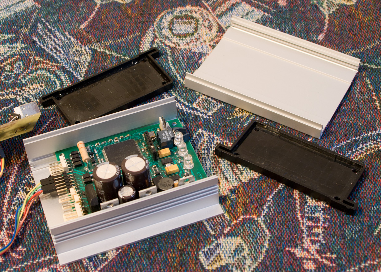 Следующая штука, которая планируется в UTC4 - наконец должен появится корпус. Прошлый профиль мне не нравился, но из-за больших конденсаторов пришлось взять его. Кроме того, там пришлось бы делать свои крышки из нержавейки, но ее меньше чем лист 2*3 метра не продают. Куда мне деть столько крышечек было не понятно, этим и тормозился процесс. Теперь я нашел более удобный корпус, уже порезанный, а главное, с крышичками! Крышки. правда, пластмассовые, но можно наклеить на них толстый алюминиевый скотч, должно быть хорошо и просто. Кроме того, у этого корпуса есть удобный фланец, за который можно привинтить UTC к основанию теслы.