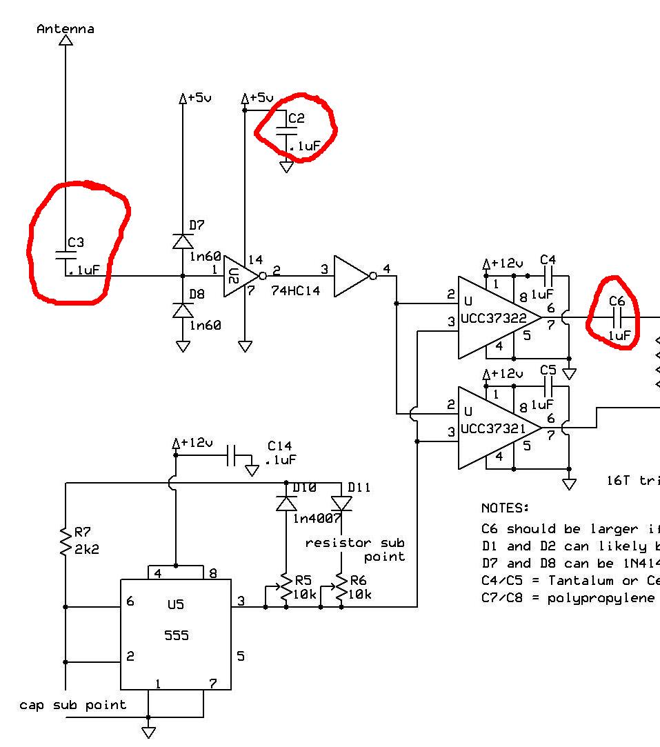 BSVI писал что в схеме(той, первой) допущены ошибки, и про то что в UCC возникет кратковременный сквозняк из которого энергией запасается индуктивность дорожек, которая выдаёт потом эту энергию и убивает микрухи, так вот нету ли ошибок в последней схеме Стива, и насколько я понял для того чтоб побороть эти паразитные выбросы надо поставить С4 и С5 несколько штук впраралель и всё?
