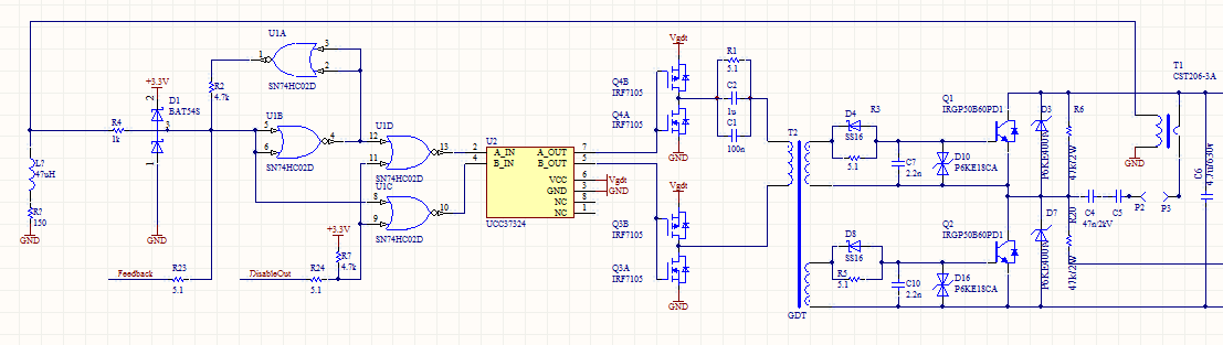 Вся эта система просится под замену на обычные UCC37321 + UCC37322, как не странно.