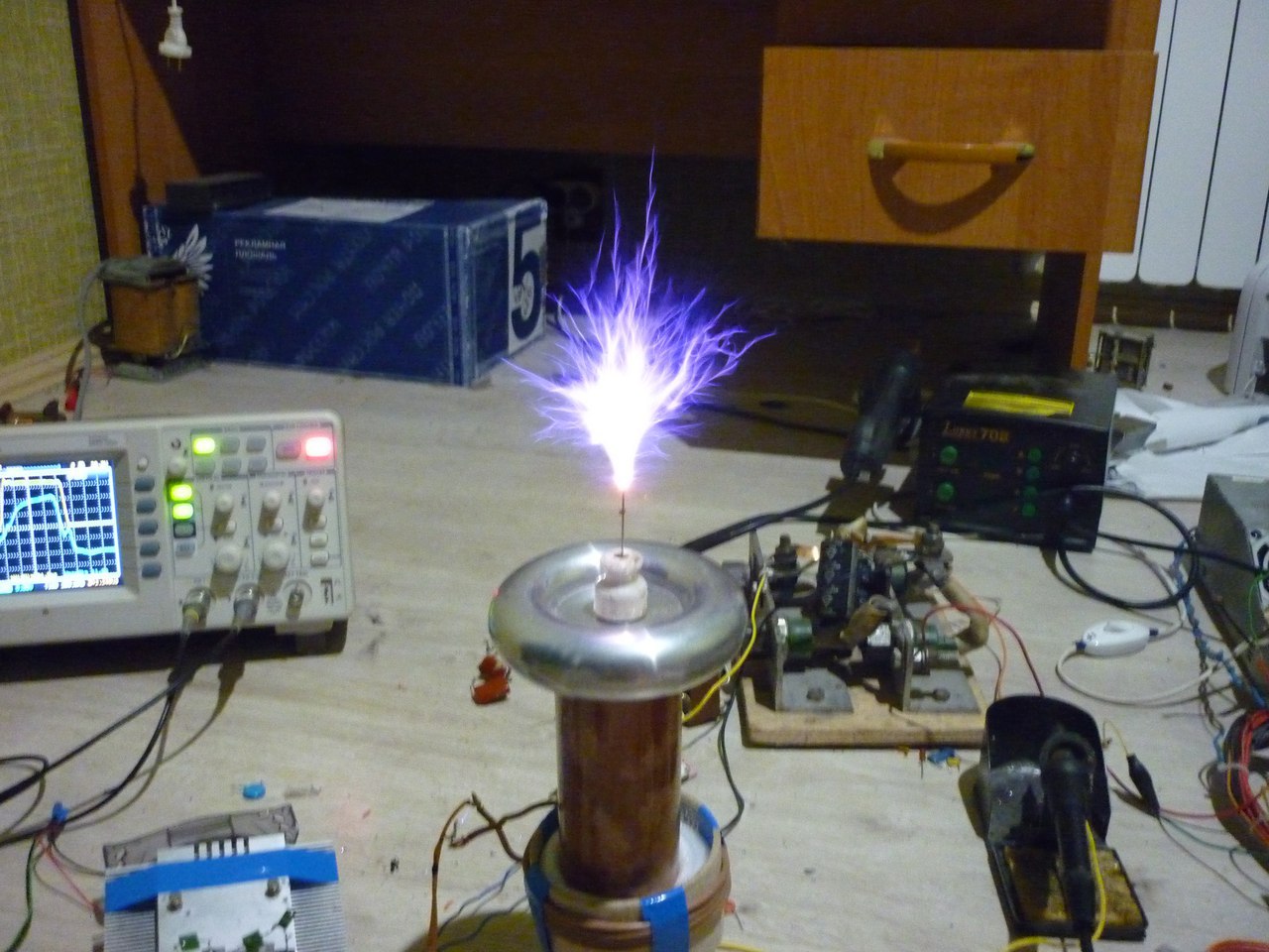 PLL CW SSTC, могла работать в CW от сети длительное время, правда время ограничивалось нагревом первички и вторички и выходных каскадов драйвера (они сильнее всего грелись).