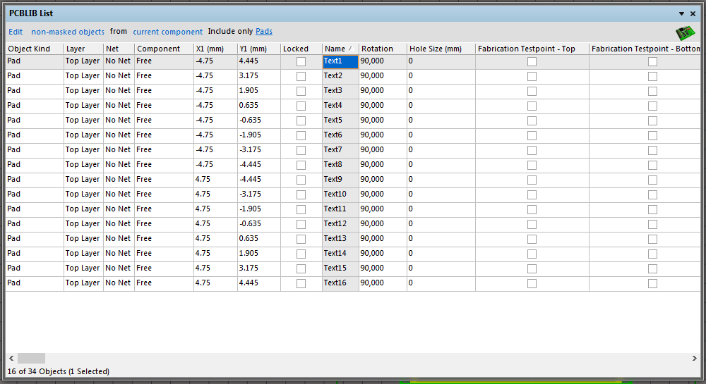 Dmitriy_Lyuosev писал(а):Есть инструмент PCB List в редакторе плат и SCH List в редакторе схем. Если умеете работать с ним в связке с Excel, то трудностей с созданием компонентов на 200 ног не будет.