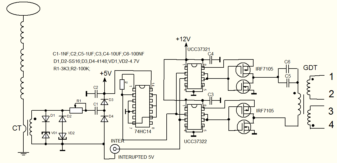 собирал эту схему управления и еще с lm311 током граничения -обе схемы работали не правильно-с разрядника дуга была маленькая ,но мощная как на сварочнике.подозрения пали на ucc37321 или 322 точно не помню,сигнал на eneibl поступал а на выходе не было-поменял 3 пары уцешек-единственное что все были в smd корпусе, в dipe не пробовал,хотел сделать драйвер-компакт