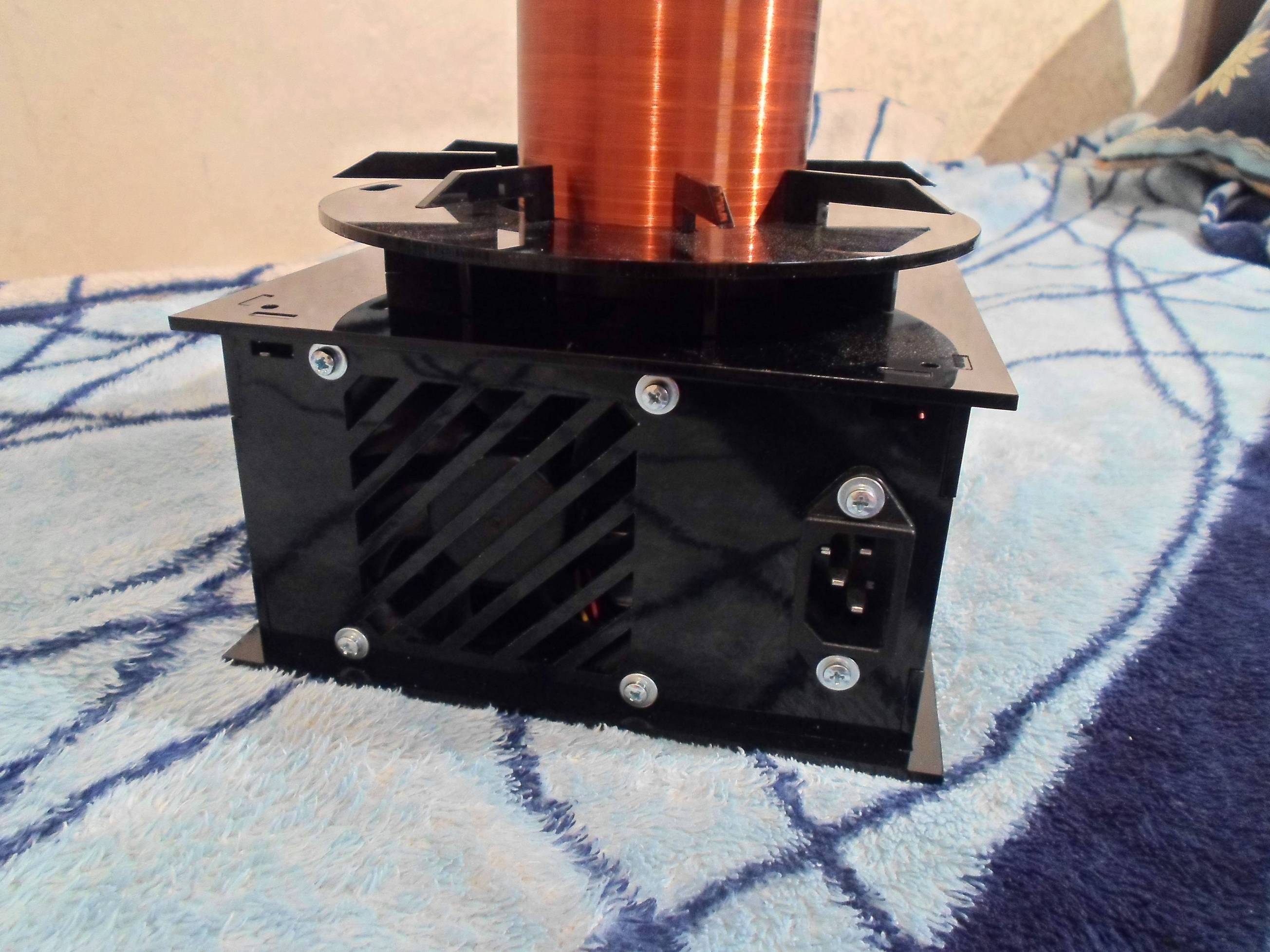 за усиленный копус можно вполне просить ещё сотню баксов,для музыкальной проффессиональной аппаратуры это ничто,а дома теслу особо не погоняешь.Так что советую сделать проффесиональный вариант,SimpleTesla DrSSTC на него явно пока не дотягивает.На первом же выносе пришлось менять катушку ,переделывая крепление.А электроника выжила.