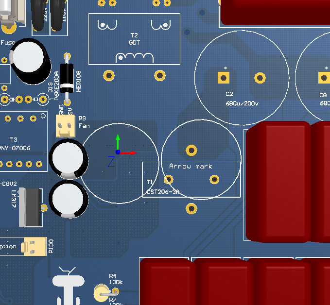 Для того. чтобы освободить место, пришлось много всего переразвести. И поменять корпуса электролитов (8мм вместо 10) И опять в плате получаются большие изменения :(