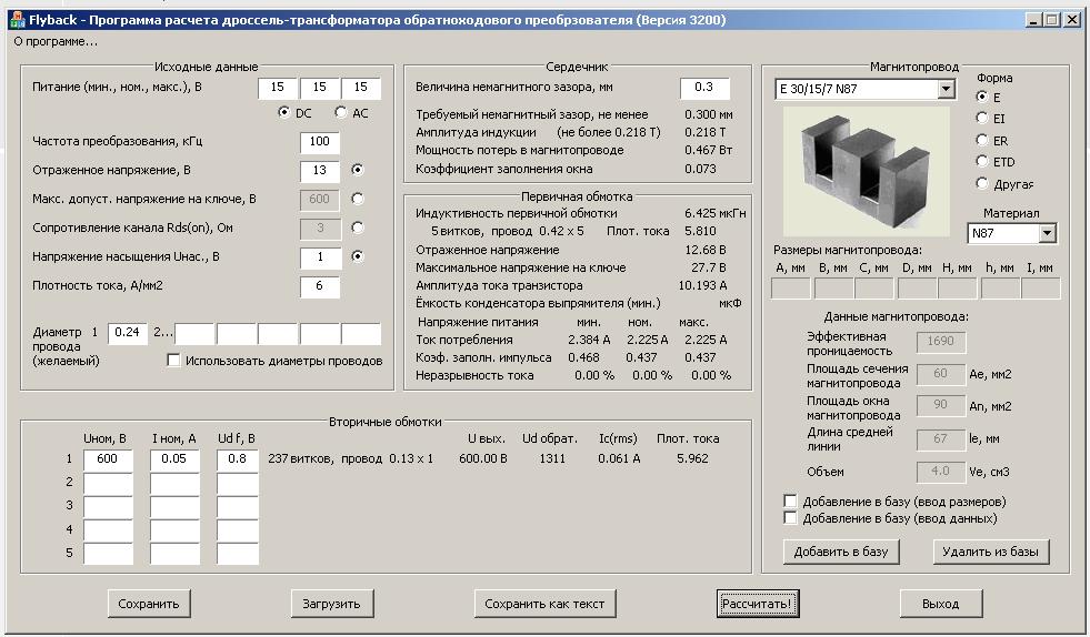 но некоторые параметры я незнаю как задавать. трансформатор (точнее каркас и железо) я решил взять от дежурки АТХ блока питания. размотал уже.