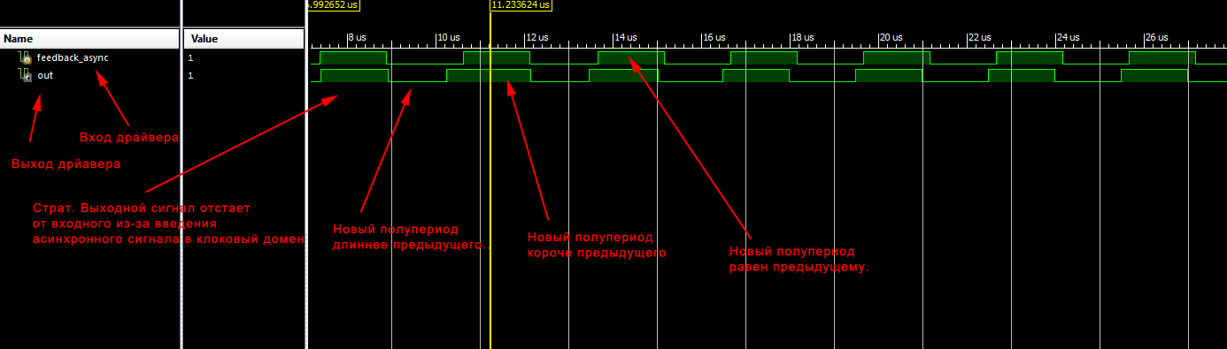 * Фильтр обратной связи отфильтровывает дребезг и не реагирует на переключения обратной связи если они приходят с периодом менее 500нс друг от друга.