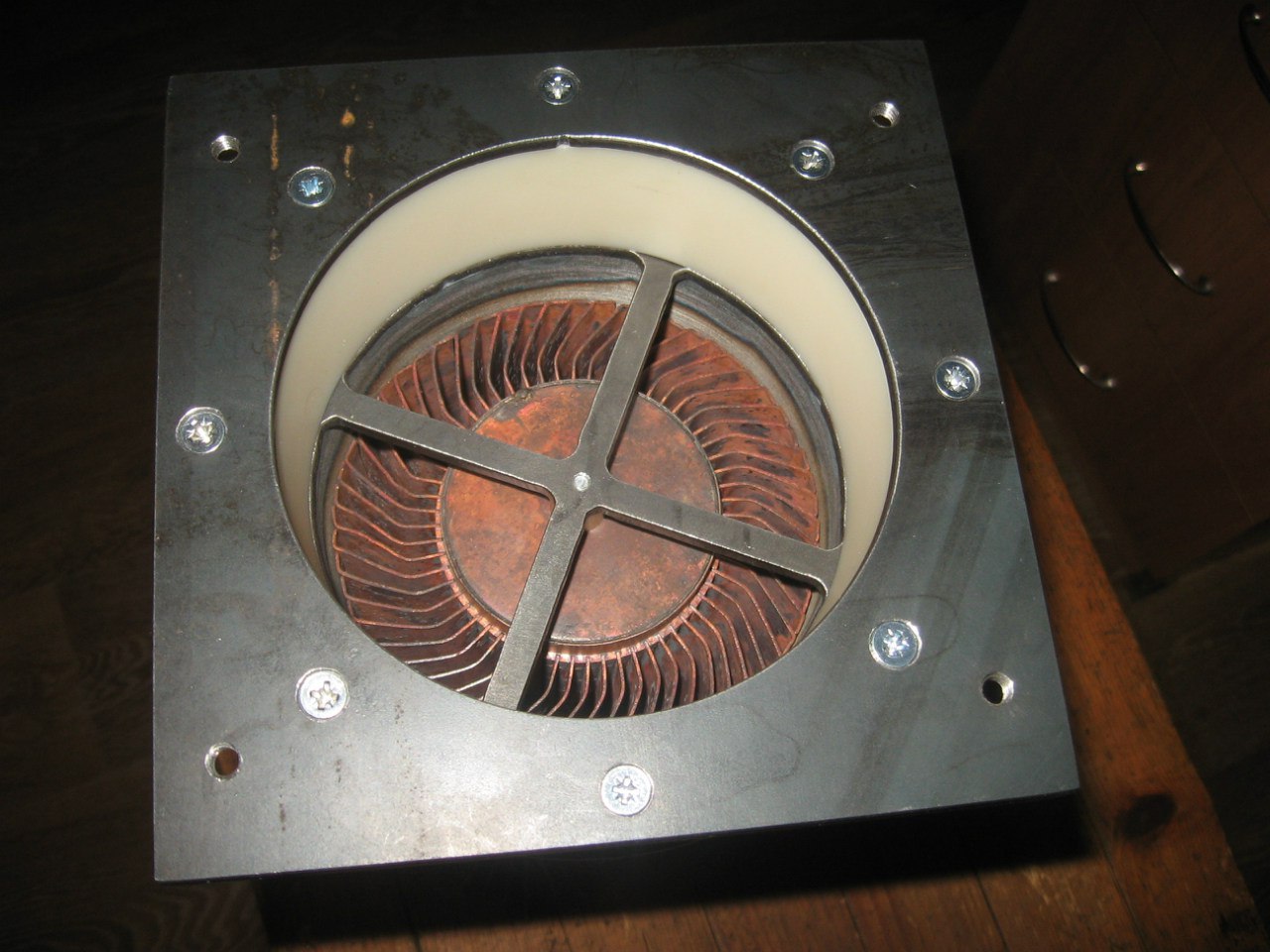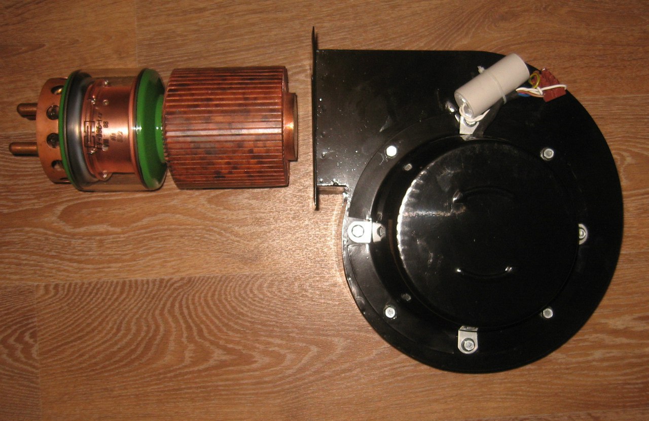 Ну а теперь по охлаждению. Я уже упоминал, что лампа раскаляется просто чудовищно? Ну вот и чудовищный вентилятор подъехал. Встречайте - турецкий центробежный вентилятор для наддува котлов bahcivan aorb (BRDS 180-60, 1200 m³/h). Да, тясяча двести кубометров в час. Поток просто дичайший, и да, он вполне способен продуть лампу без проблем.
