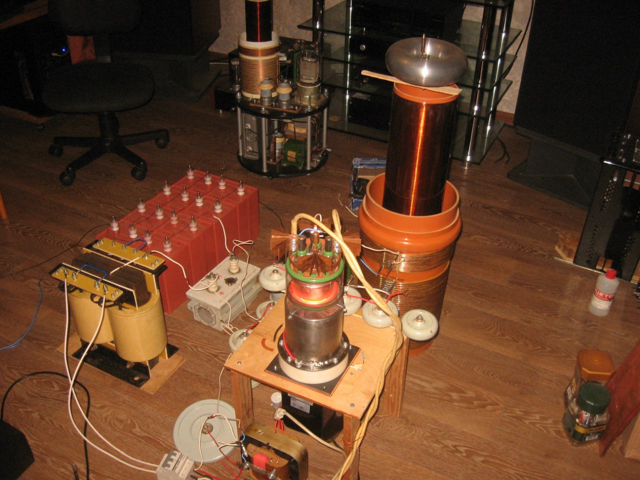 Всего пробовалось три: маленькая Тесла, драйвер строчника, и простой триодный усилок в классе А.