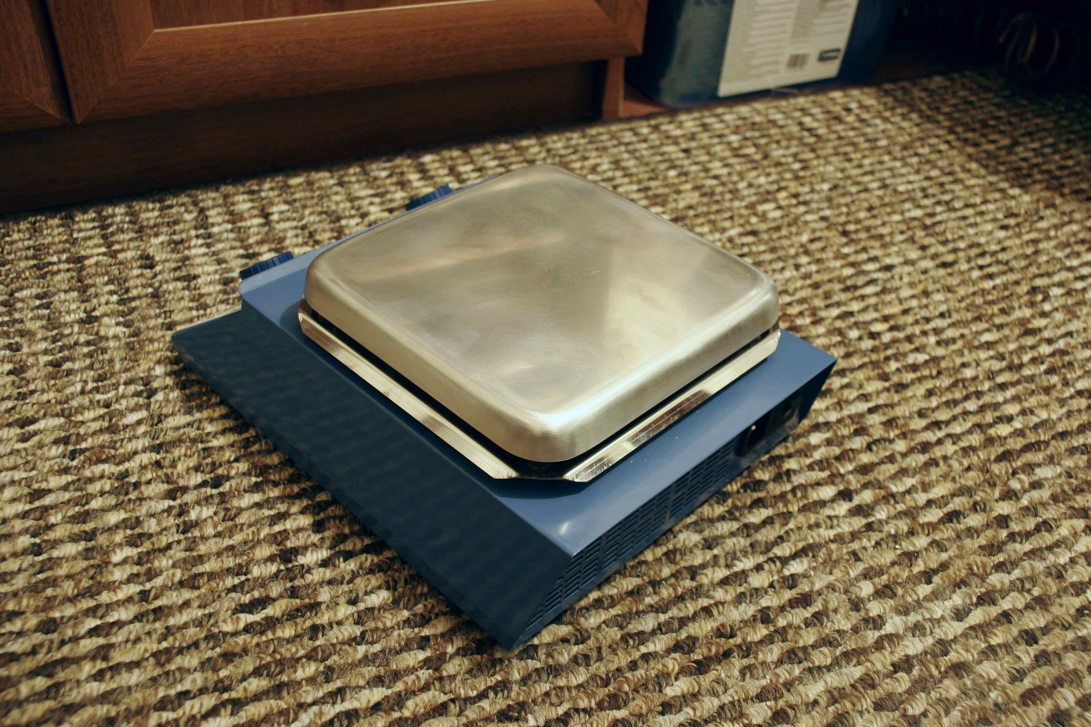 Т.е. колбу-реактор необходимо подогреть, и подогреть точно. При этом если просто поставить колбу на электроплитку — конвекция не успевает уравнивать температуру по всему сосуду.