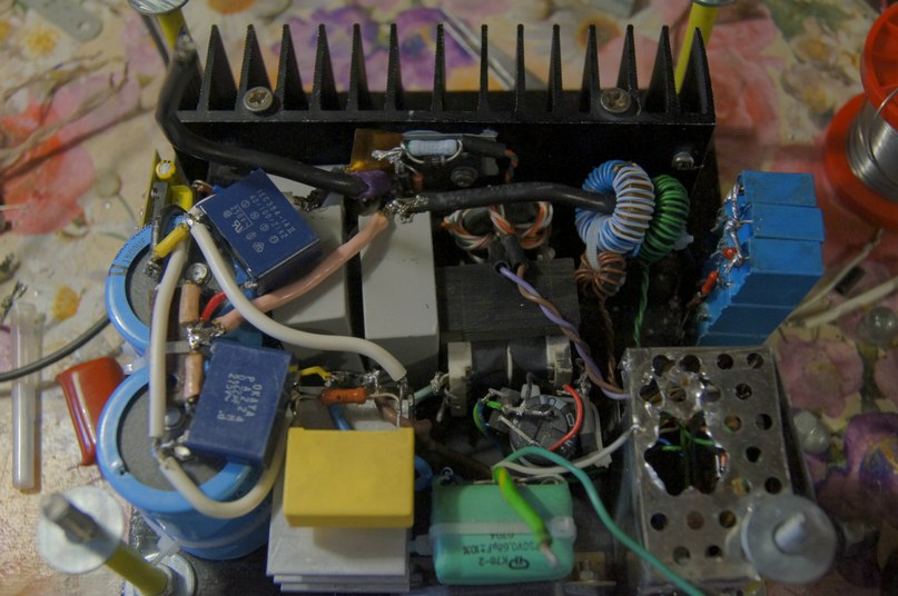 Оно стало выплевывать сочные 20см спарки(что составляет 2.5 длины вторики), но спасал от вылета транзисторов только разделительный транс мощностью 80Вт, ибо мозгов у меня тогда не особо было. Он обеспечивал заряд конденсаторов в питании, но в непрерывном режиме работы катушки отдавал ничтожный ток, который не мог бы спалить ключи. После этого проект был заброшен на полтора месяца потому, что именно столько времени мне шла посылка с деталями :D