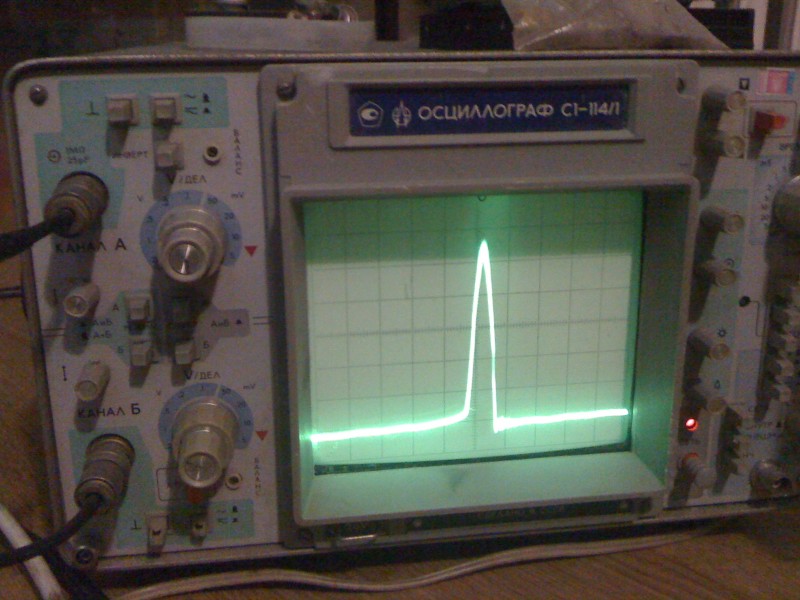 На D-S полевика правильный, cтабильный сигнал полусинус класса Е: При попытке раздельного питания силовой и управляющей уже нифига не пашет, при любом напряжении на силовой, вплоть до 20В(больше не подавал, а то так уже спалил один транзитор, который ко всему нехило греется при любом напряжении питания в данных условиях)на D-S полевика виднеется вот такая осциллограмма: При том, что частота её намного ниже чем заданные 1.4МГц.